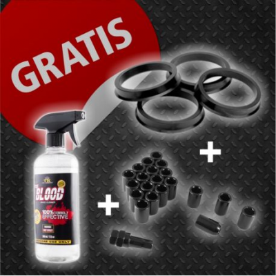 Комплект пръстени на главината на гумата + комплект винтове или гайки, както и почистващ препарад БЕЗПЛАТНО при поръчки за 4 и повече джанти (Моля, напишете модела на автомобила в бележката надолу).