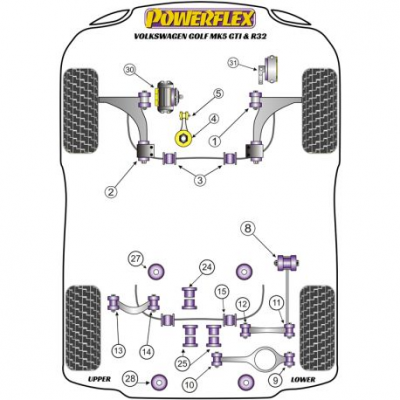 Powerflex Горен вътрешен Тампон за двигател Volkswagen GolfMK5 (2003 - 2009) Golf Mk5 GTI & R32